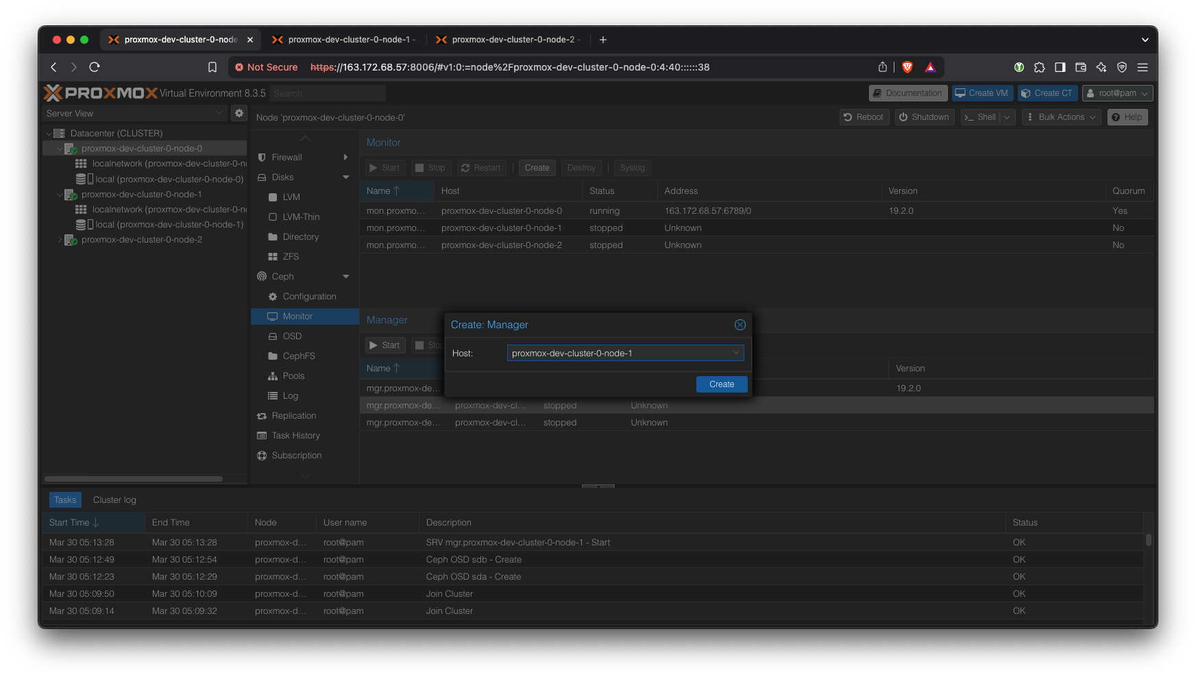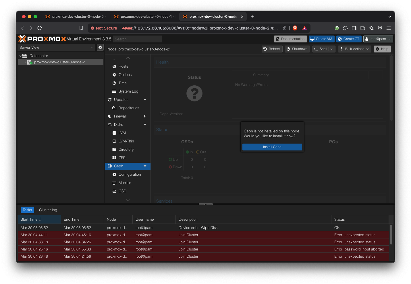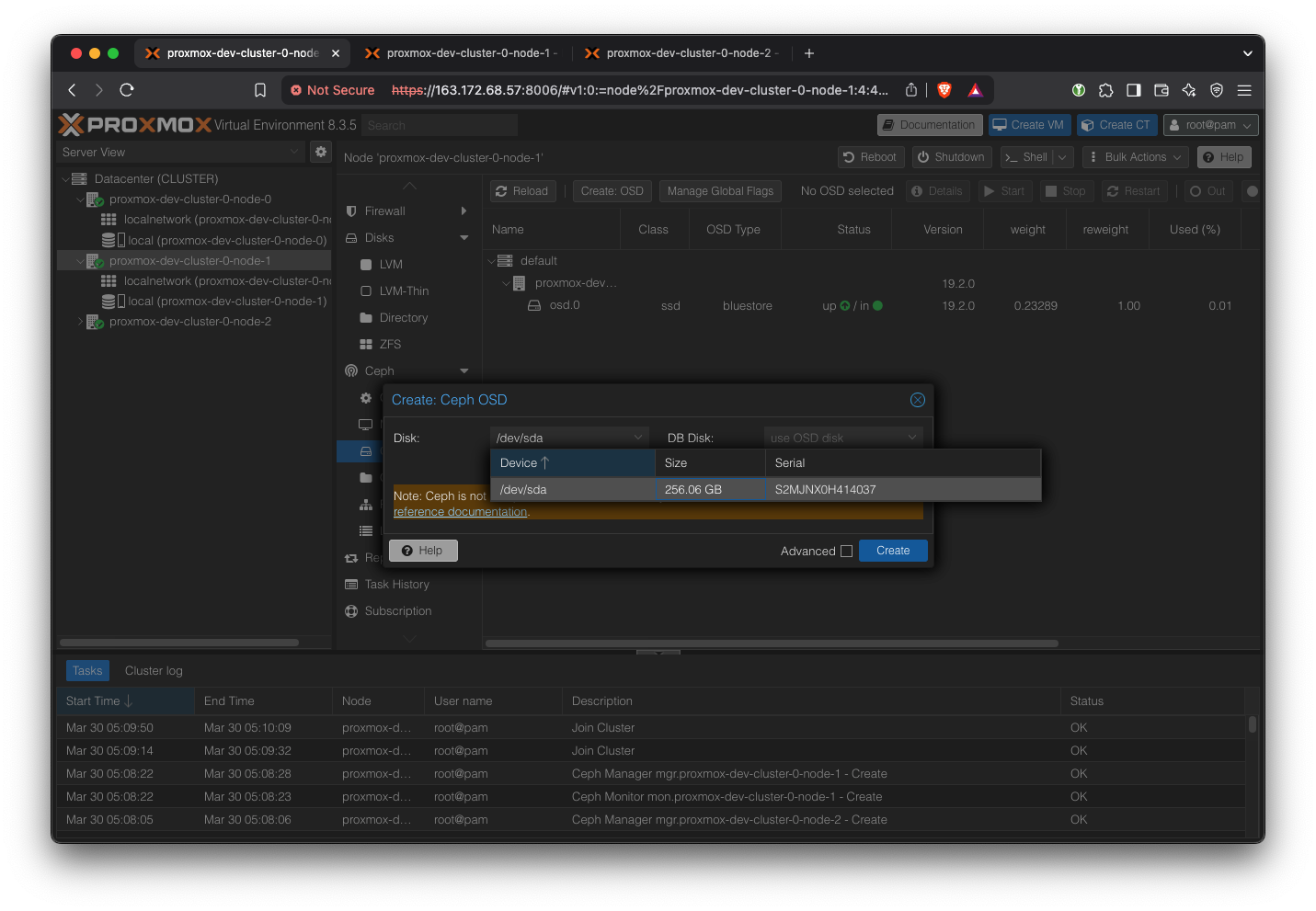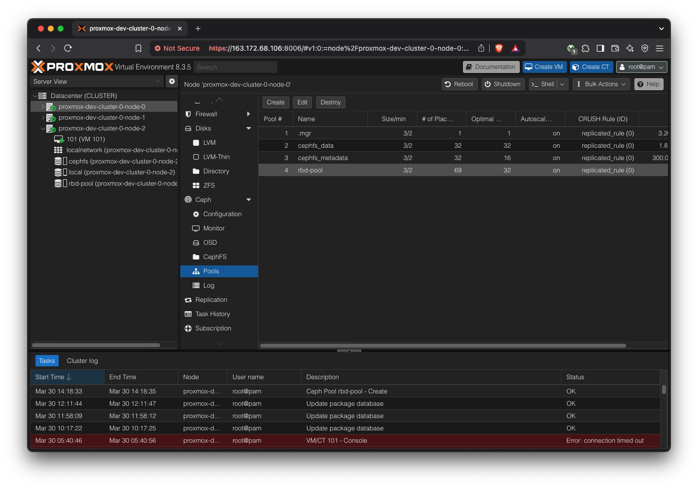 0x00000003 1 163.172.68.106Create Ceph Cluster on top of Proxmox Cluster