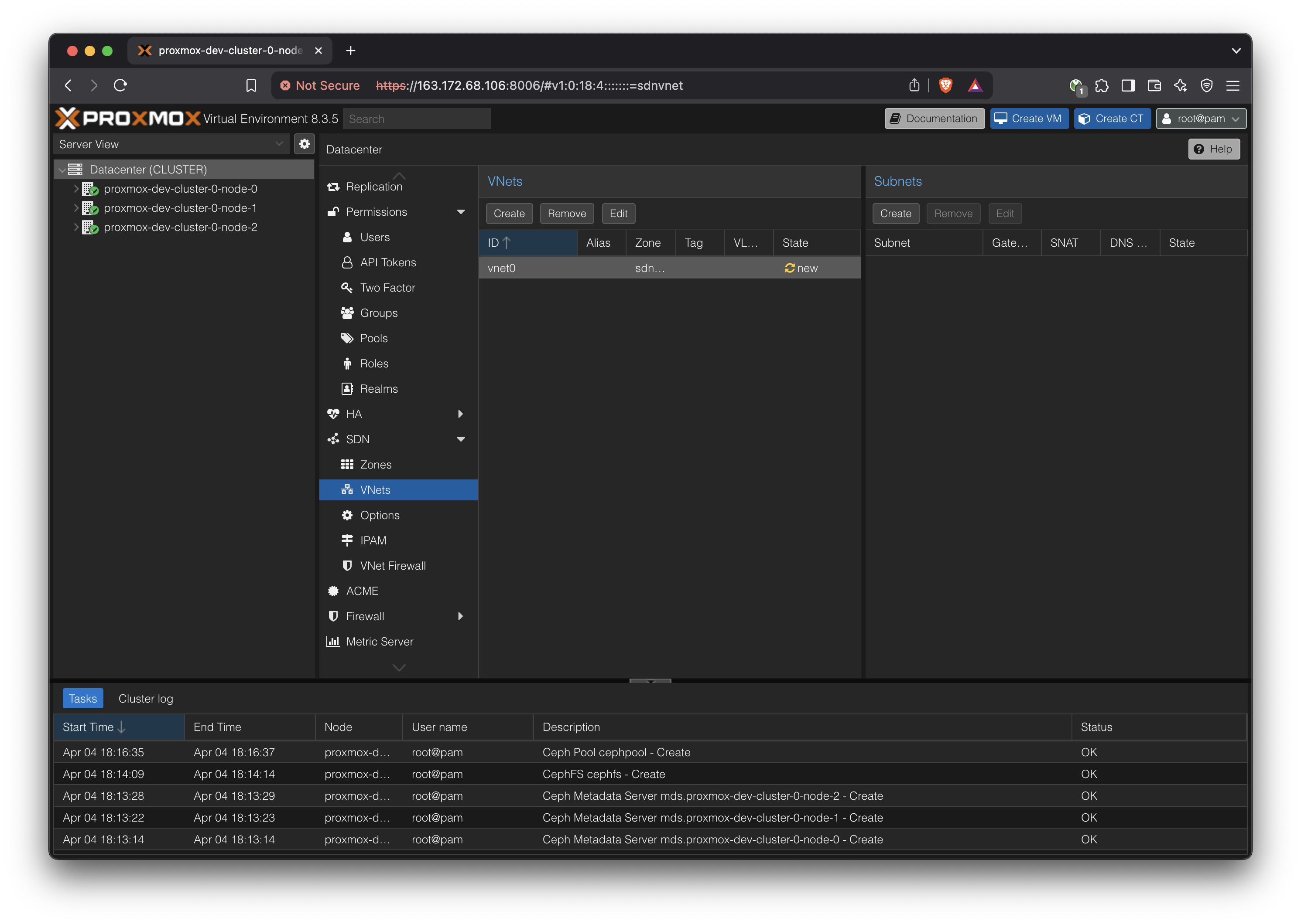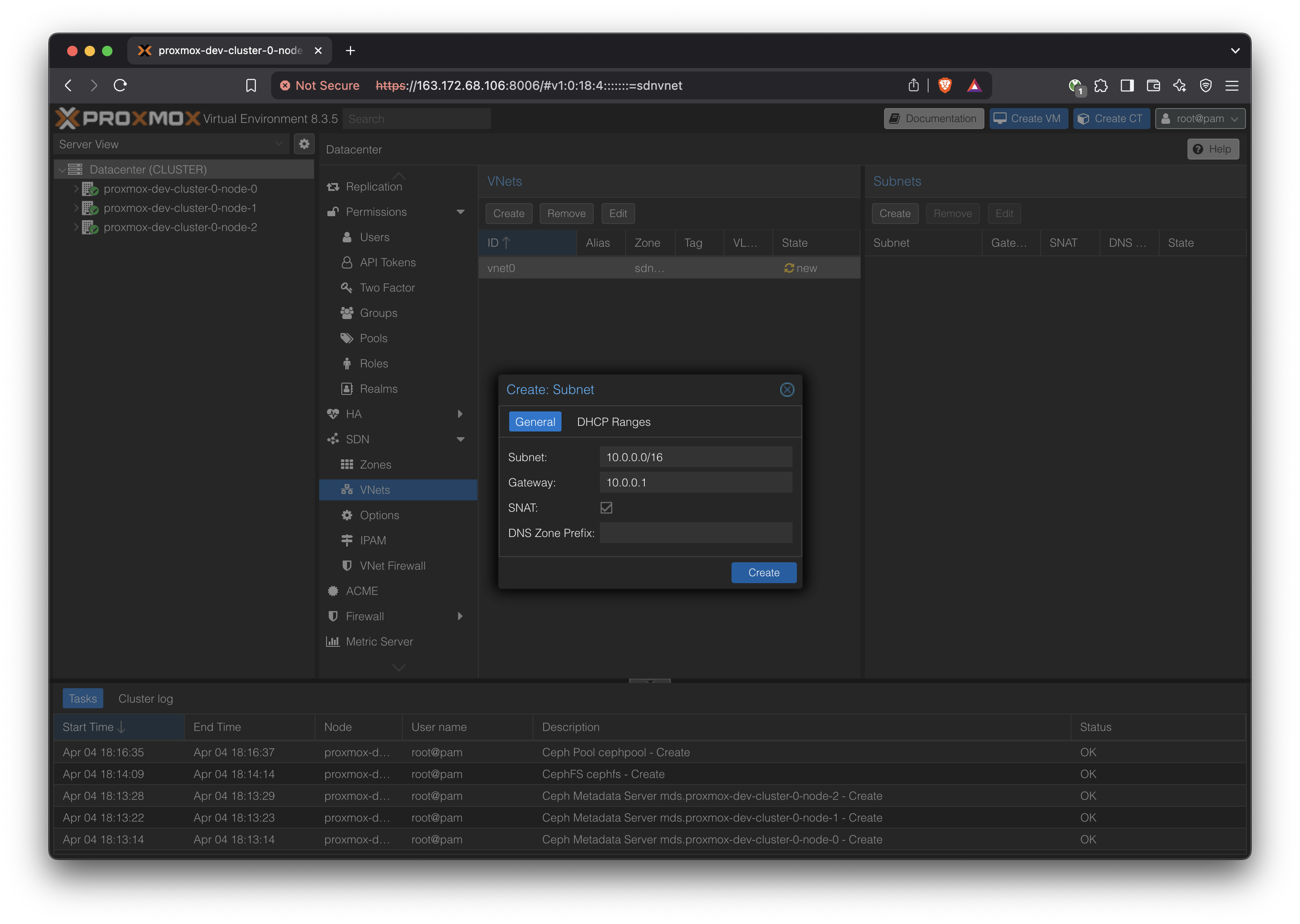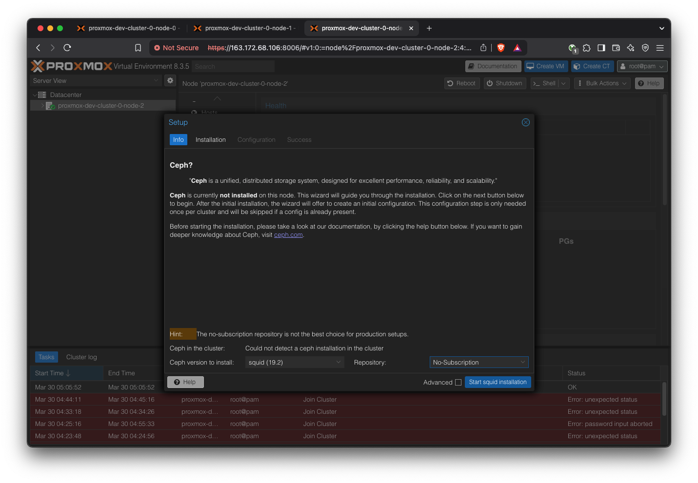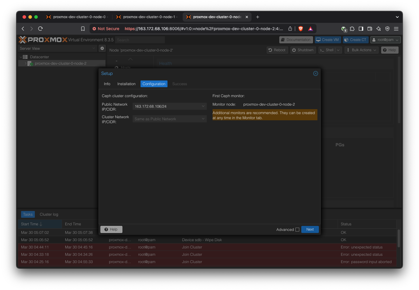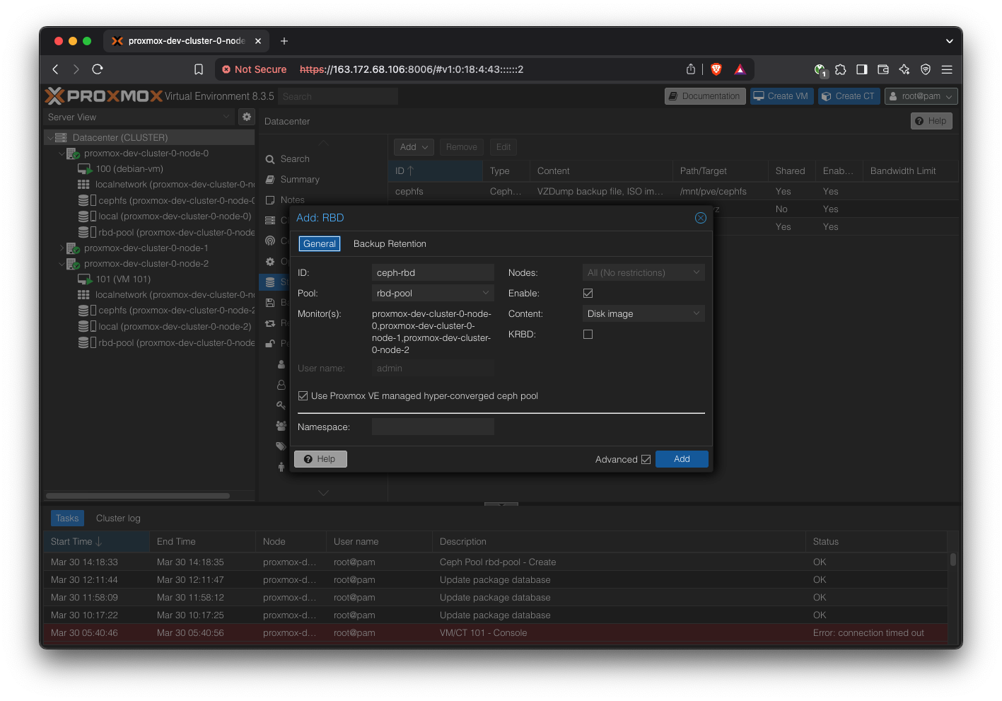 0x00000003 1 163.172.68.106Create Ceph Cluster on top of Proxmox Cluster