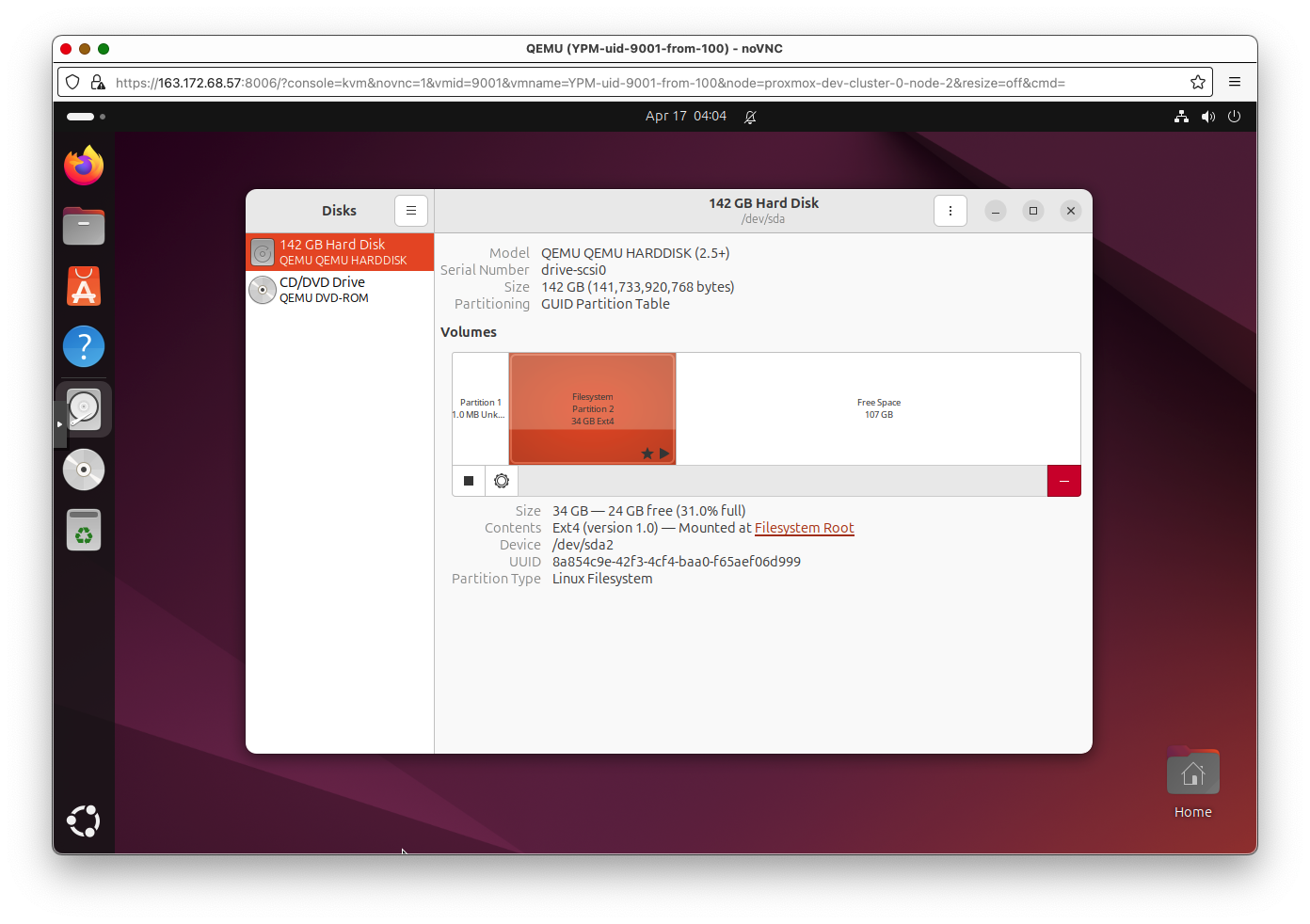 When the Proxmox Middleware creates a new VM a given storage size (let’s say 100GB), the actual layout of /dev/sda (the default drive, which is actually on shared Ceph RBD storage) looks like this: